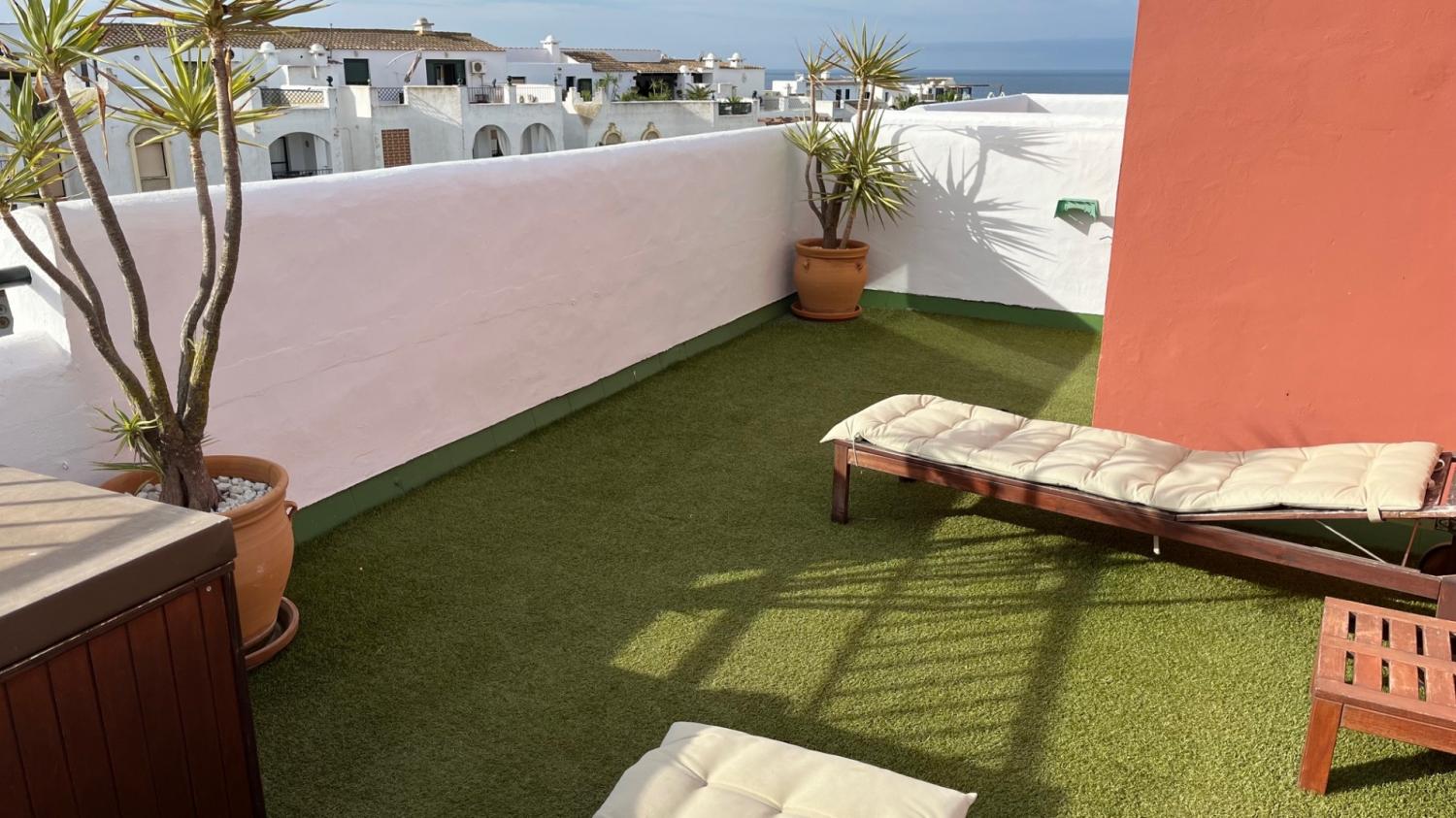Alquiler de Ático Urb. Atl. Playa , de 3 dormitorios, 2baños, salón-comedor, , tiene ventiladores de techo y aire acond. dormitorio superior y wifi a 5 minutos de la playa andando.