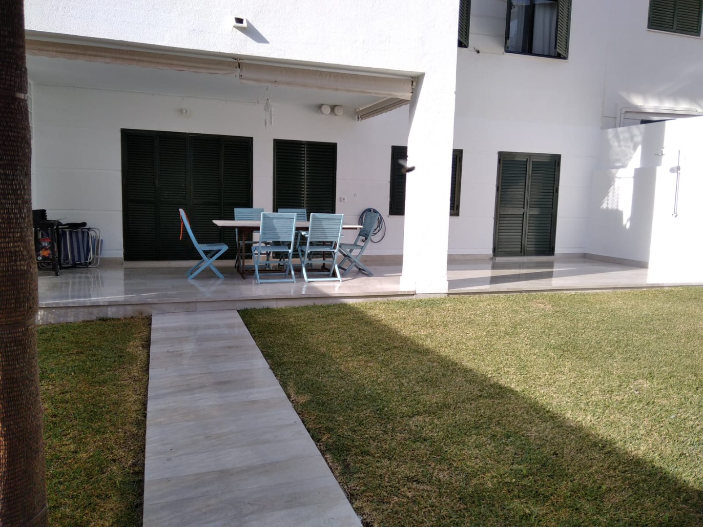 Apartamento, planta baja con amplio jardín. Consta de una estancia principal, que comprende el vestíbulo, salón y cocina. Lavadero independiente. Terraza cubierta, con toldos perimetrales para envolver el espacio, además de una amplio jardín con césped que trasmite la sensación de estar en una casa individual. Dos dormitorios, uno de matrimonio y otro con tres camas. Baño completo. El apartamento está completamente amueblado y dotado para su uso y disfrute. También cuenta con plaza de garaje.